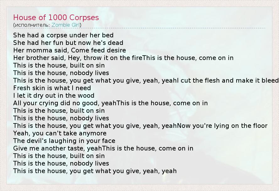 А как ты думаешь, о чем песня "House of 1000 Corpses" ?
