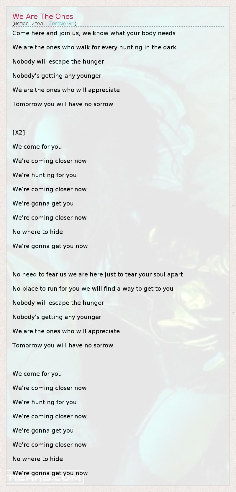 А как ты думаешь, о чем песня "We Are The Ones" ?