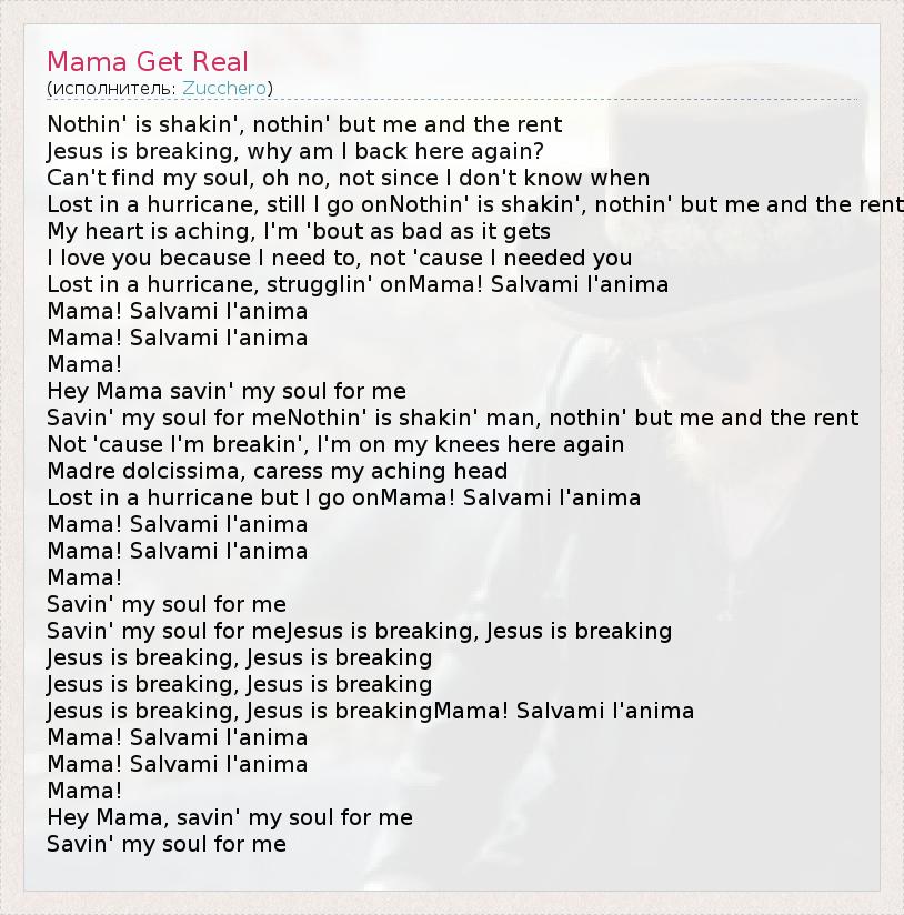 А как ты думаешь, о чем песня "Mama Get Real" ?