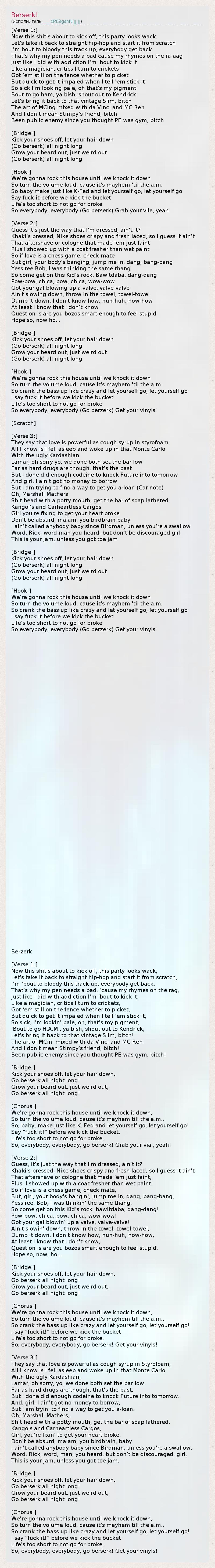 А как ты думаешь, о чем песня "Berserk!" ?