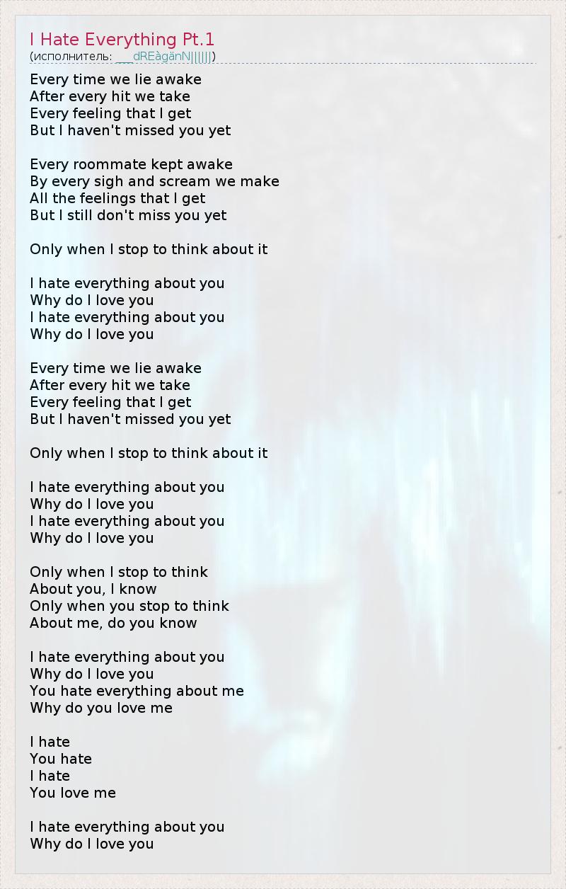 А как ты думаешь, о чем песня "I Hate Everything Pt.1" ?