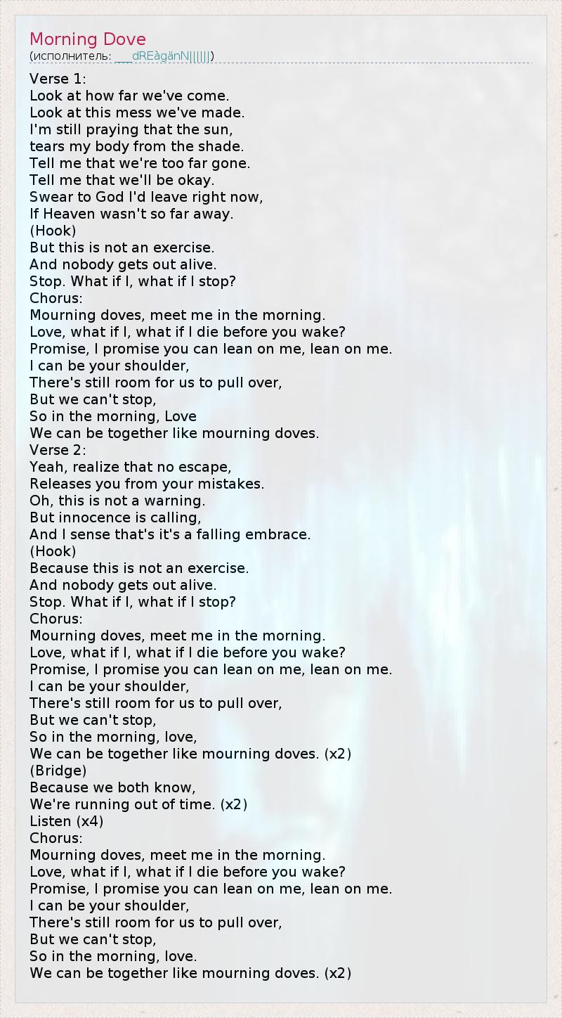 А как ты думаешь, о чем песня "Morning Dove" ?