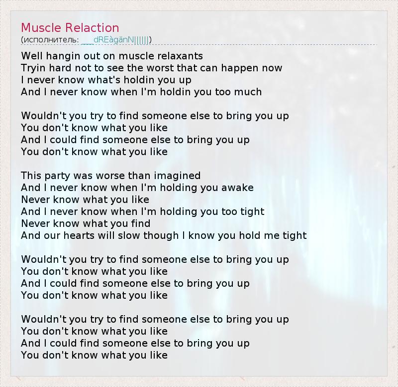 А как ты думаешь, о чем песня "Muscle Relaction" ?