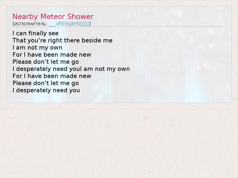 А как ты думаешь, о чем песня "Nearby Meteor Shower" ?