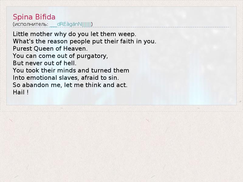 А как ты думаешь, о чем песня "Spina Bifida" ?