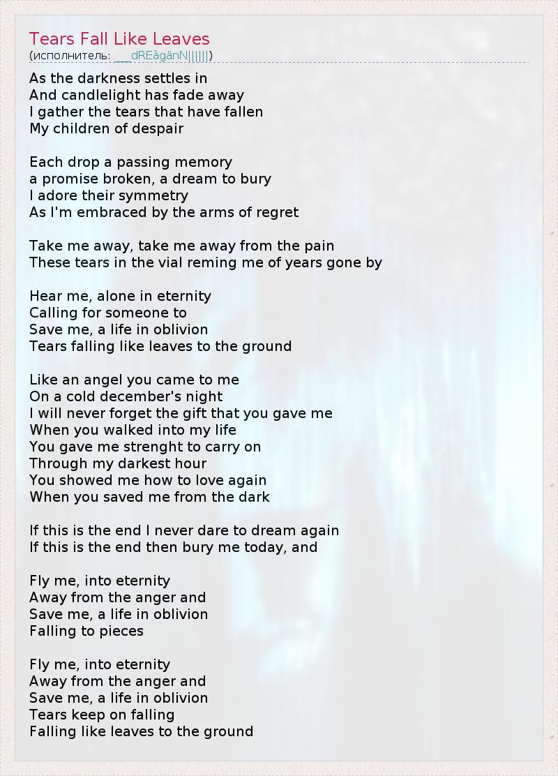 А как ты думаешь, о чем песня "Tears Fall Like Leaves" ?