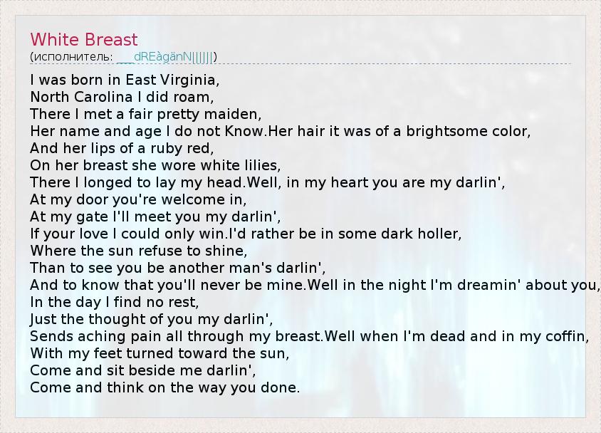 А как ты думаешь, о чем песня "White Breast" ?