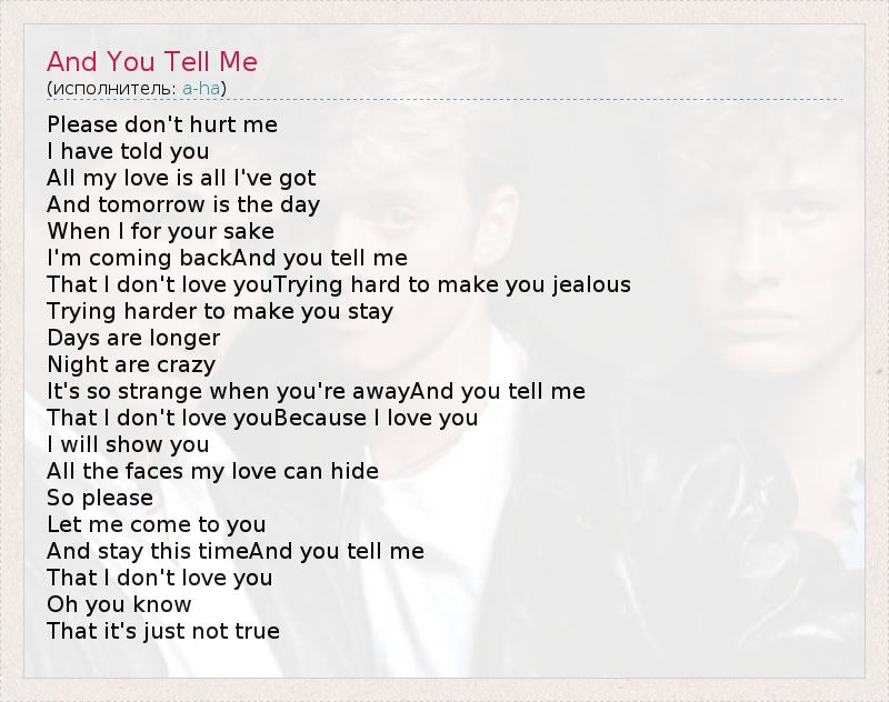 А как ты думаешь, о чем песня "And You Tell Me" ?