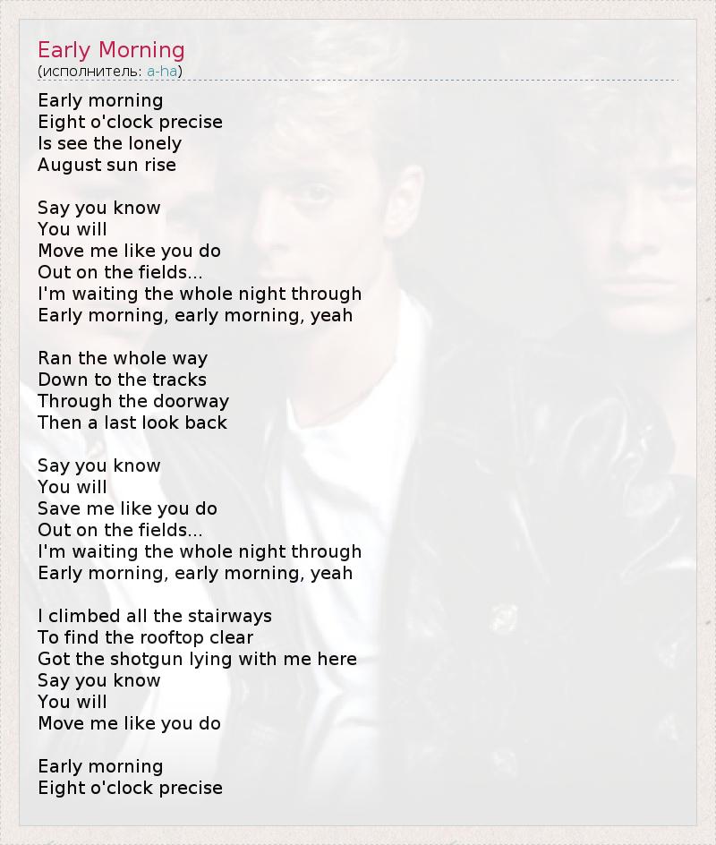 А как ты думаешь, о чем песня "Early Morning" ?