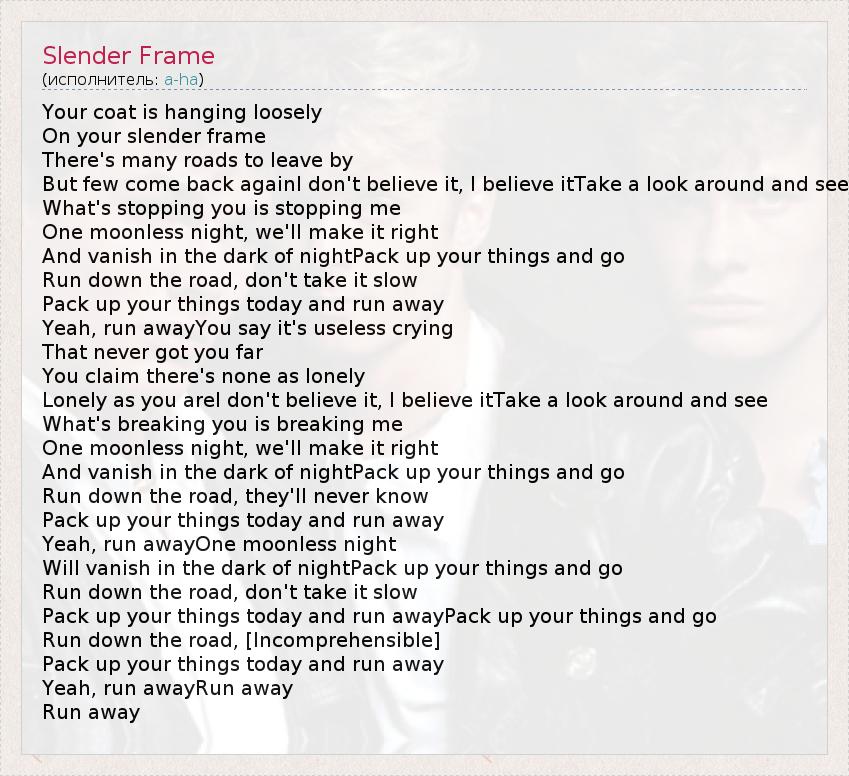 А как ты думаешь, о чем песня "Slender Frame" ?