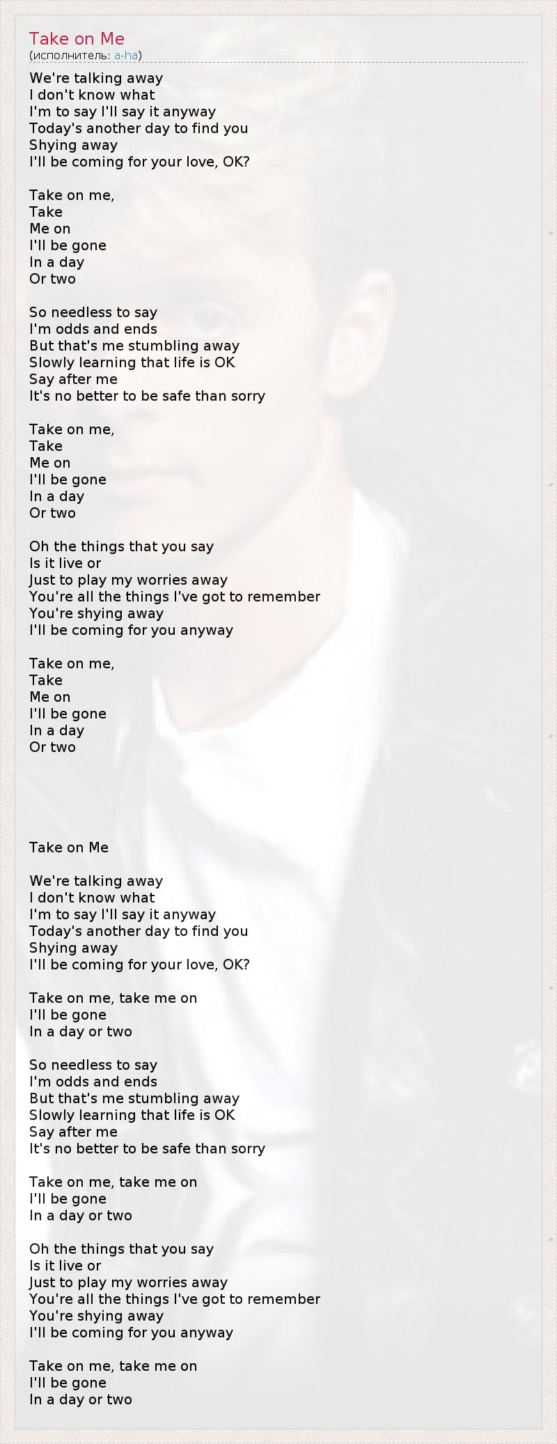 А как ты думаешь, о чем песня "Take on Me" ?