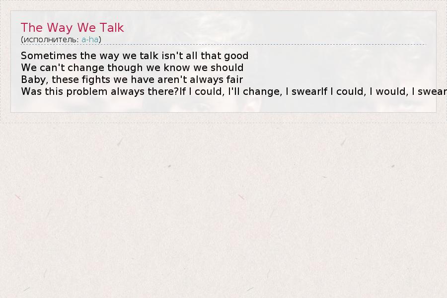 А как ты думаешь, о чем песня "The Way We Talk" ?