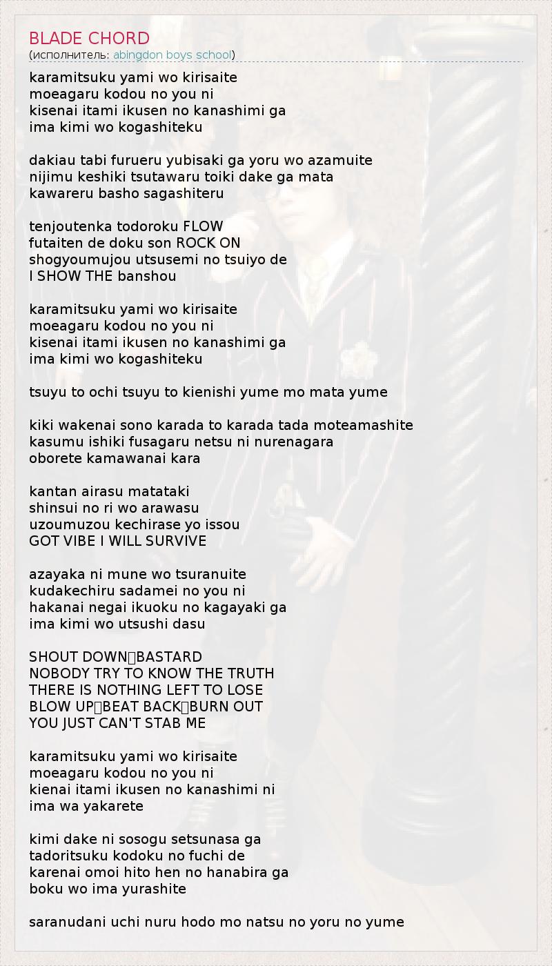 А как ты думаешь, о чем песня "BLADE CHORD" ?