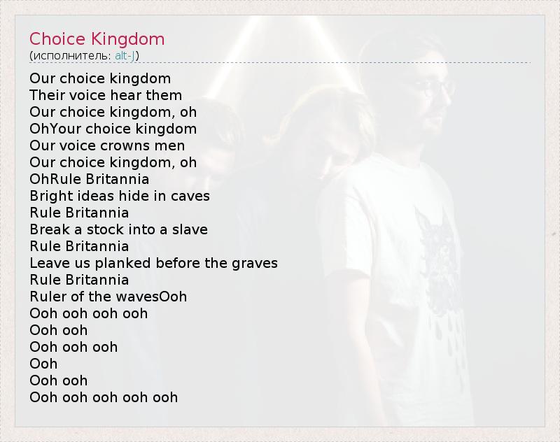 А как ты думаешь, о чем песня "Choice Kingdom" ?