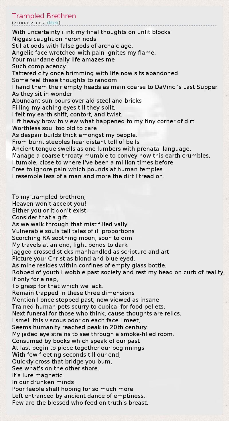 А как ты думаешь, о чем песня "Trampled Brethren" ?