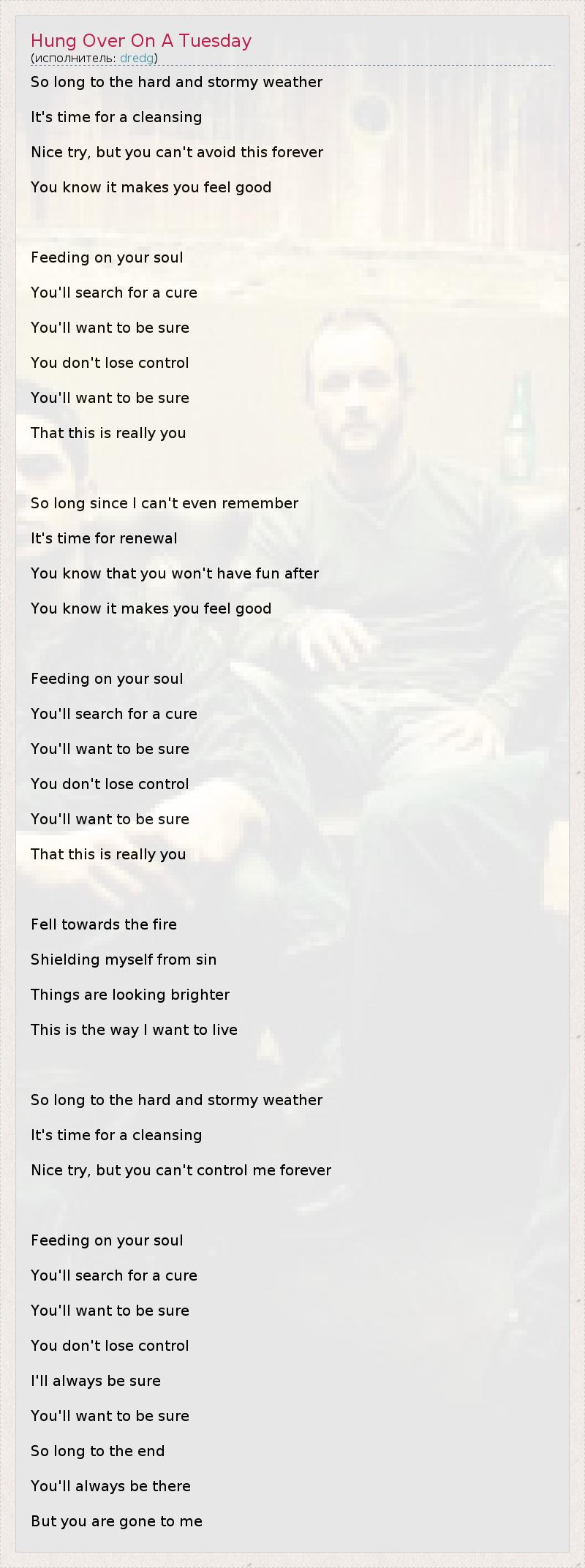 А как ты думаешь, о чем песня "Hung Over On A Tuesday" ?