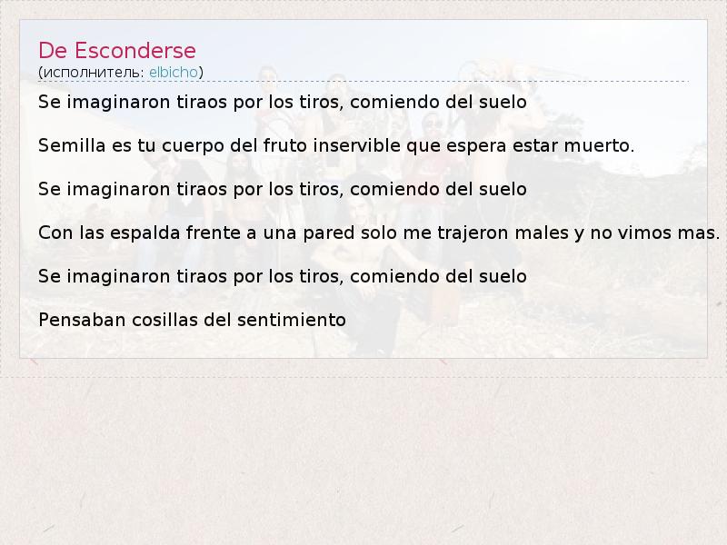 А как ты думаешь, о чем песня "De Esconderse" ?
