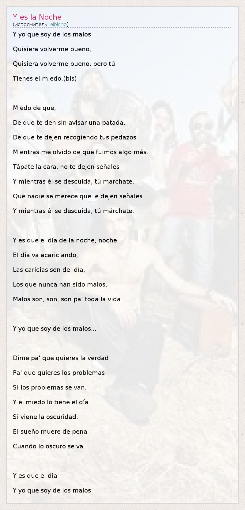 А как ты думаешь, о чем песня "Y es la Noche" ?