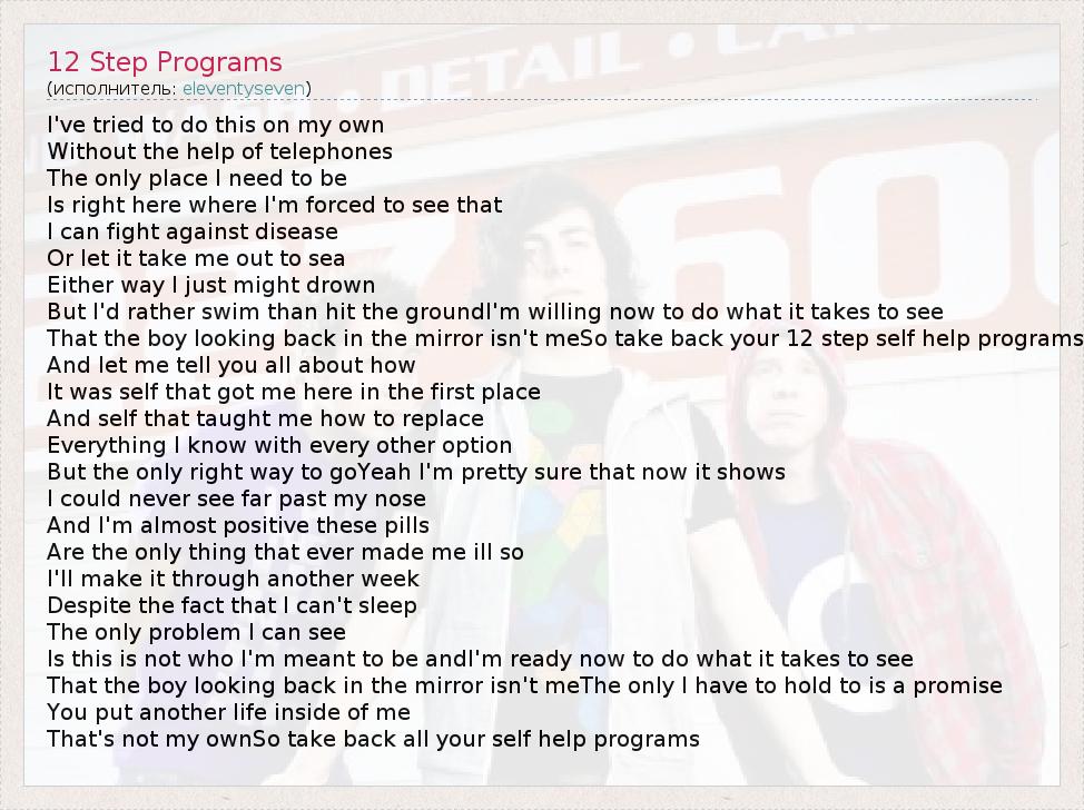 А как ты думаешь, о чем песня "12 Step Programs" ?