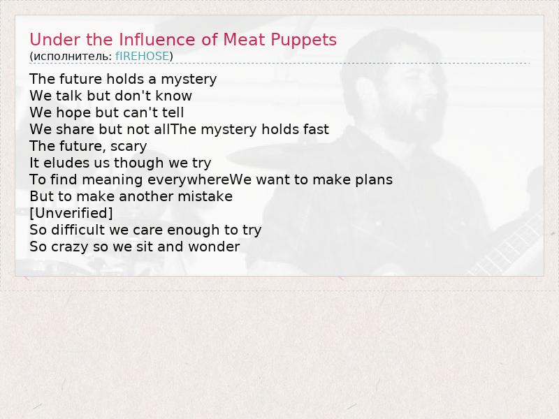 А как ты думаешь, о чем песня "Under the Influence of Meat Puppets" ?