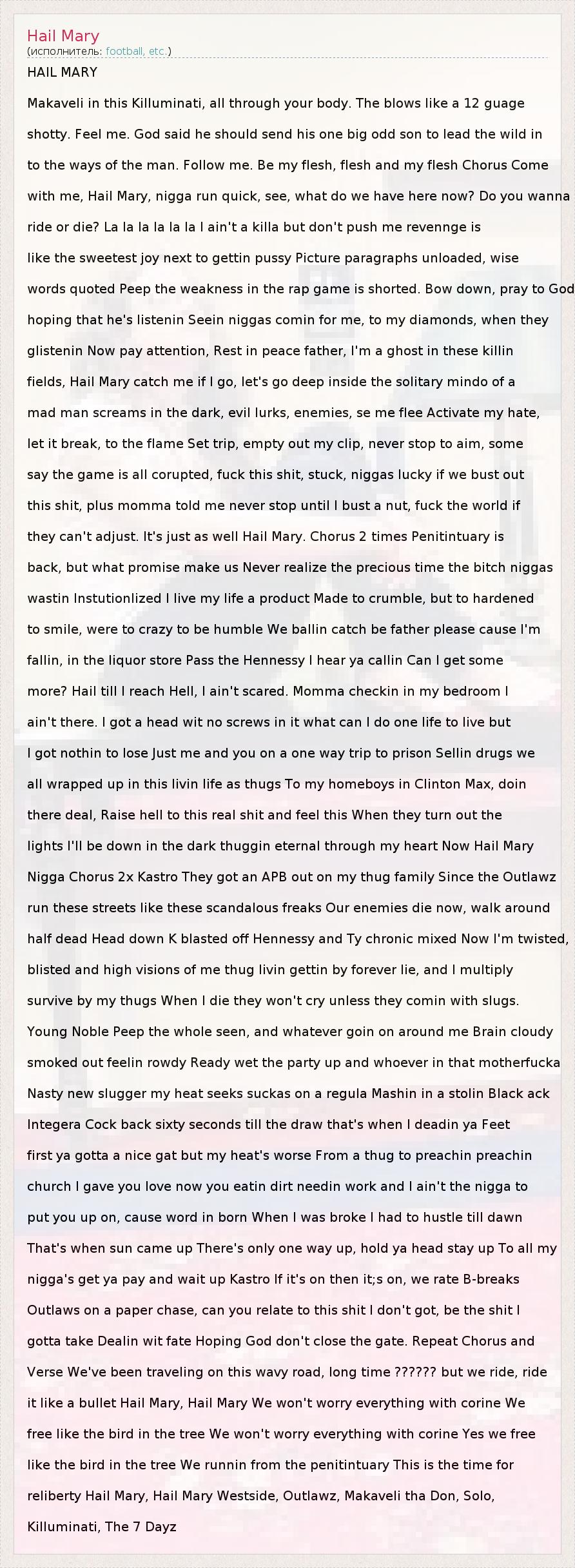 lights I'll be down in the dark thuggin eternal through my heart Now Hail Mary