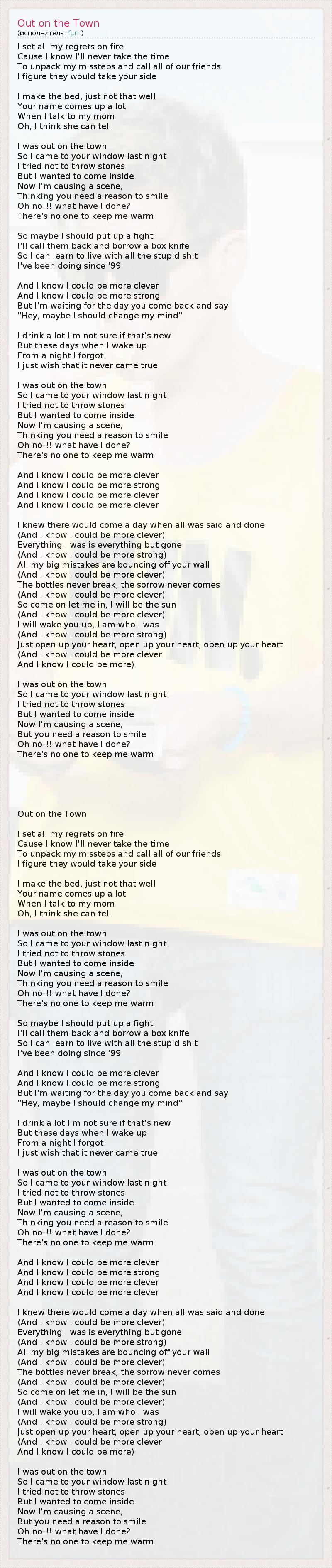 А как ты думаешь, о чем песня "Out on the Town" ?