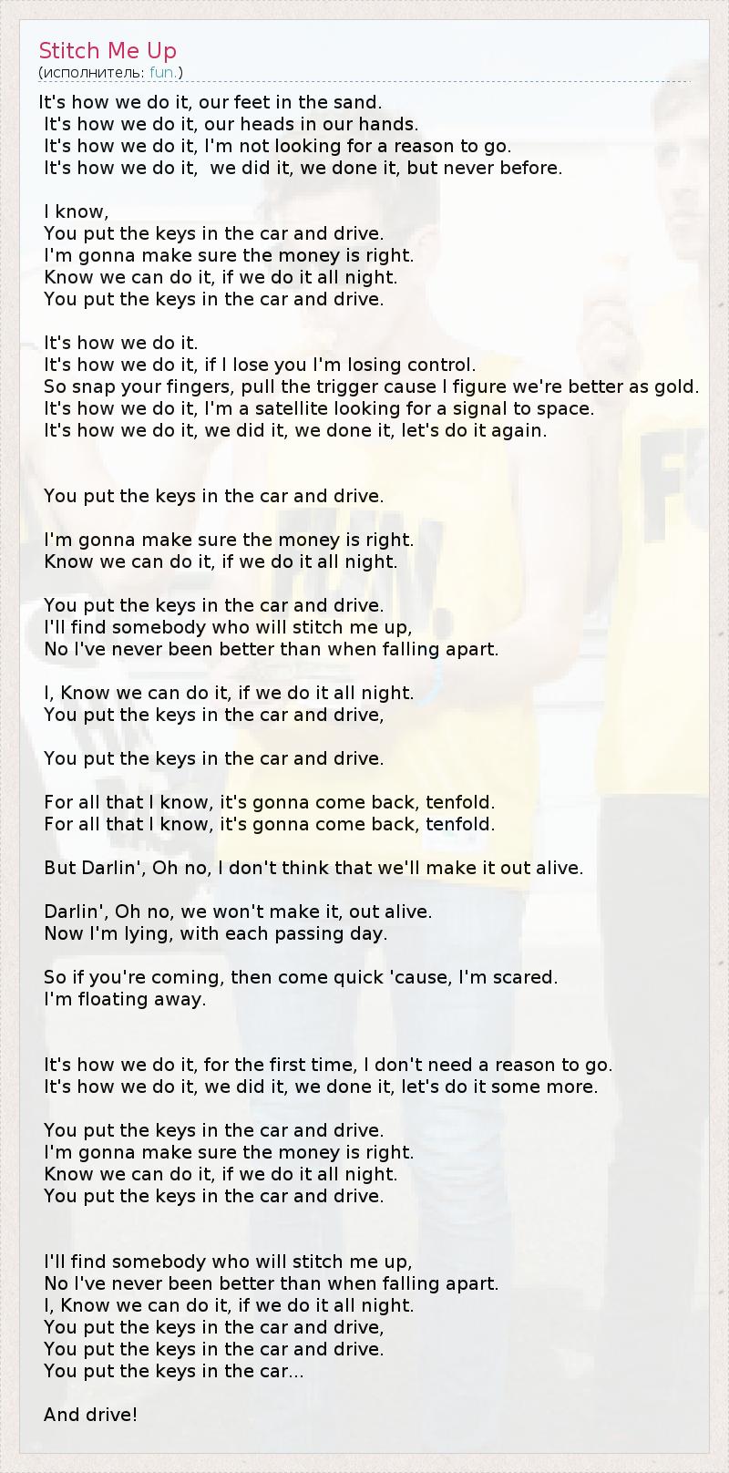 А как ты думаешь, о чем песня "Stitch Me Up" ?