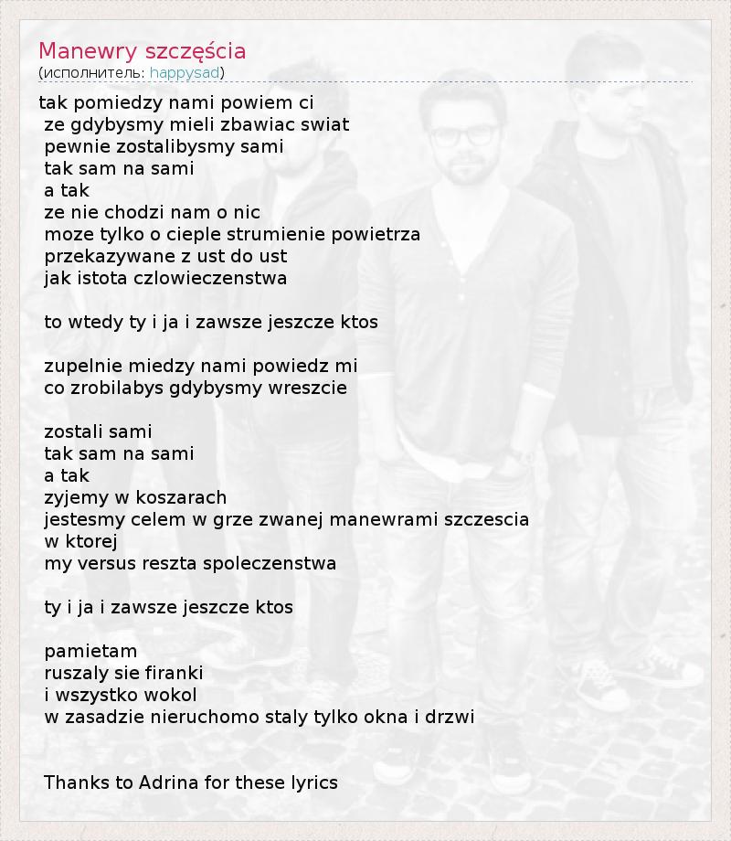 А как ты думаешь, о чем песня "Manewry szczęścia" ?