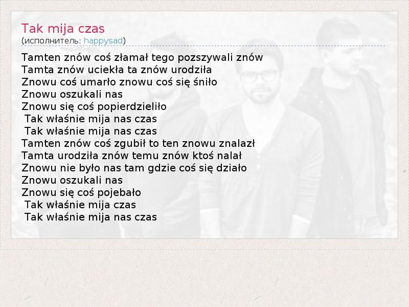 А как ты думаешь, о чем песня "Tak mija czas" ?