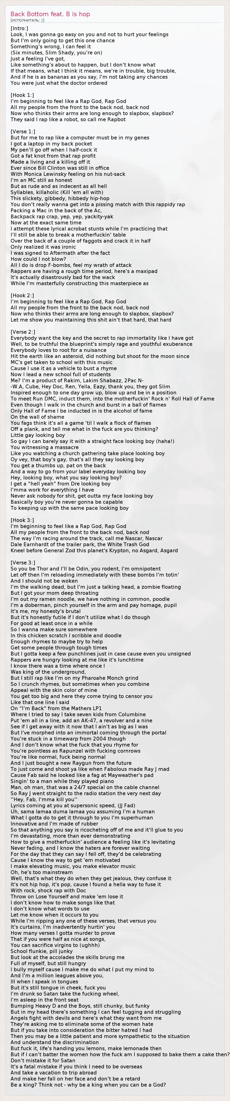А как ты думаешь, о чем песня "Back Bottom feat. B is hop" ?