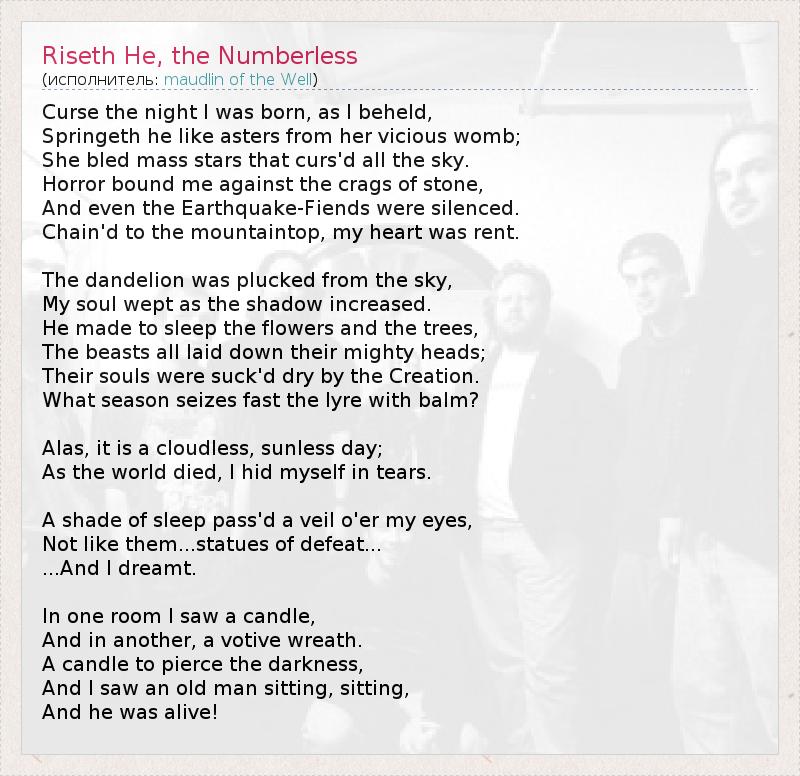 А как ты думаешь, о чем песня "Riseth He, the Numberless" ?