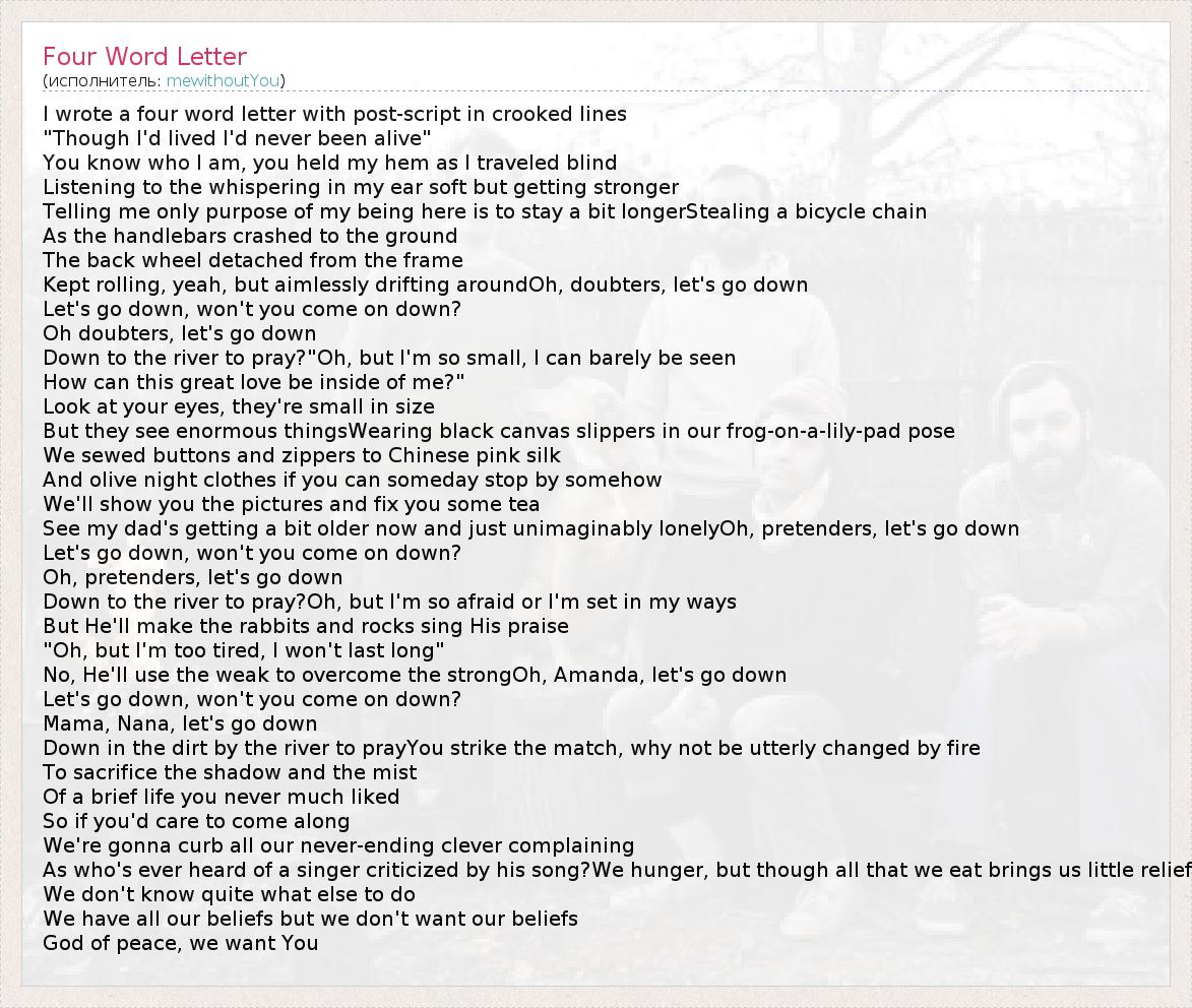 А как ты думаешь, о чем песня "Four Word Letter" ?