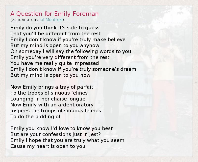 А как ты думаешь, о чем песня "A Question for Emily Foreman" ?
