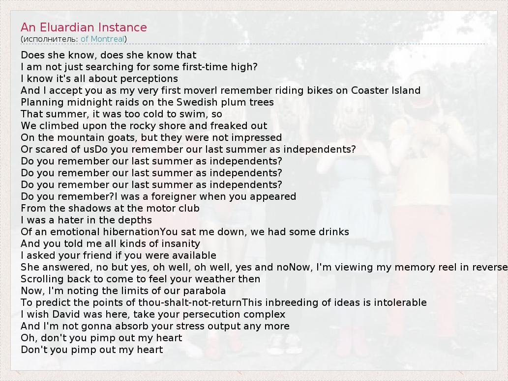 А как ты думаешь, о чем песня "An Eluardian Instance" ?