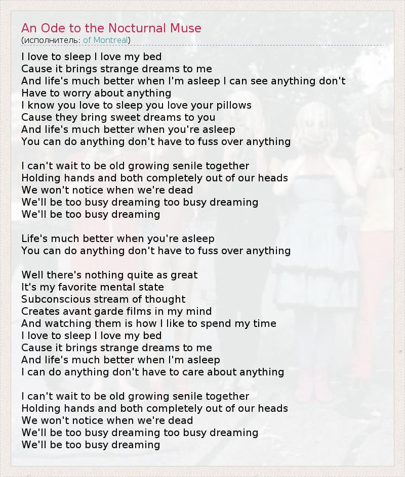 А как ты думаешь, о чем песня "An Ode to the Nocturnal Muse" ?