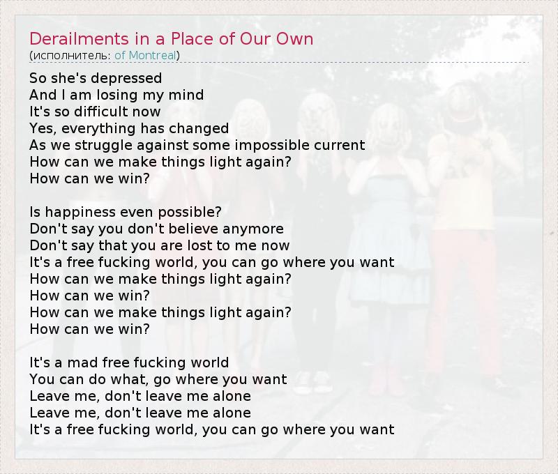 А как ты думаешь, о чем песня "Derailments in a Place of Our Own" ?