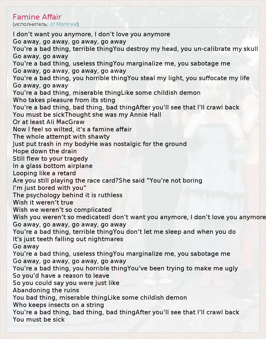 А как ты думаешь, о чем песня "Famine Affair" ?