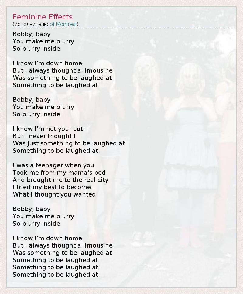 А как ты думаешь, о чем песня "Feminine Effects" ?