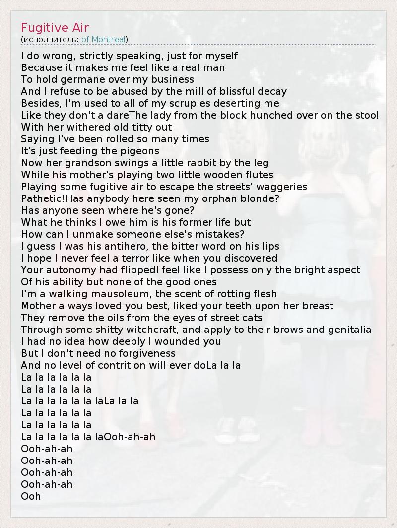 А как ты думаешь, о чем песня "Fugitive Air" ?