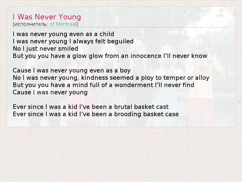 А как ты думаешь, о чем песня "I Was Never Young" ?