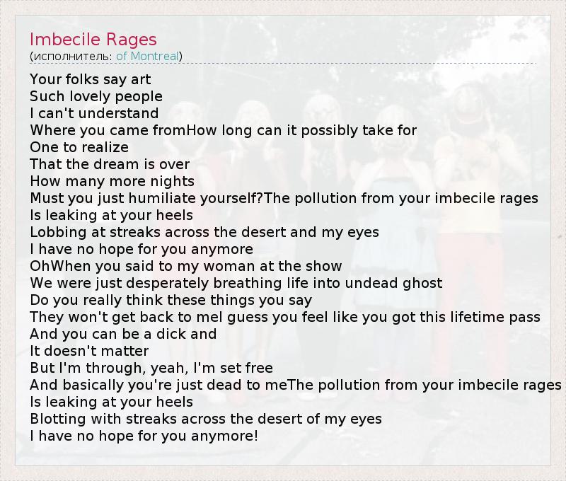 А как ты думаешь, о чем песня "Imbecile Rages" ?