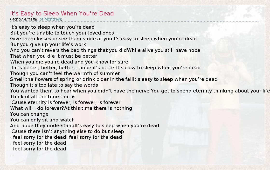 А как ты думаешь, о чем песня "It's Easy to Sleep When You're Dead" ?