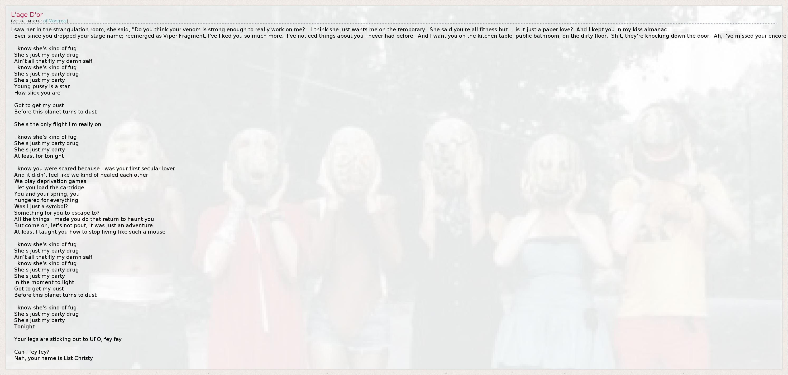 А как ты думаешь, о чем песня "L'age D'or" ?