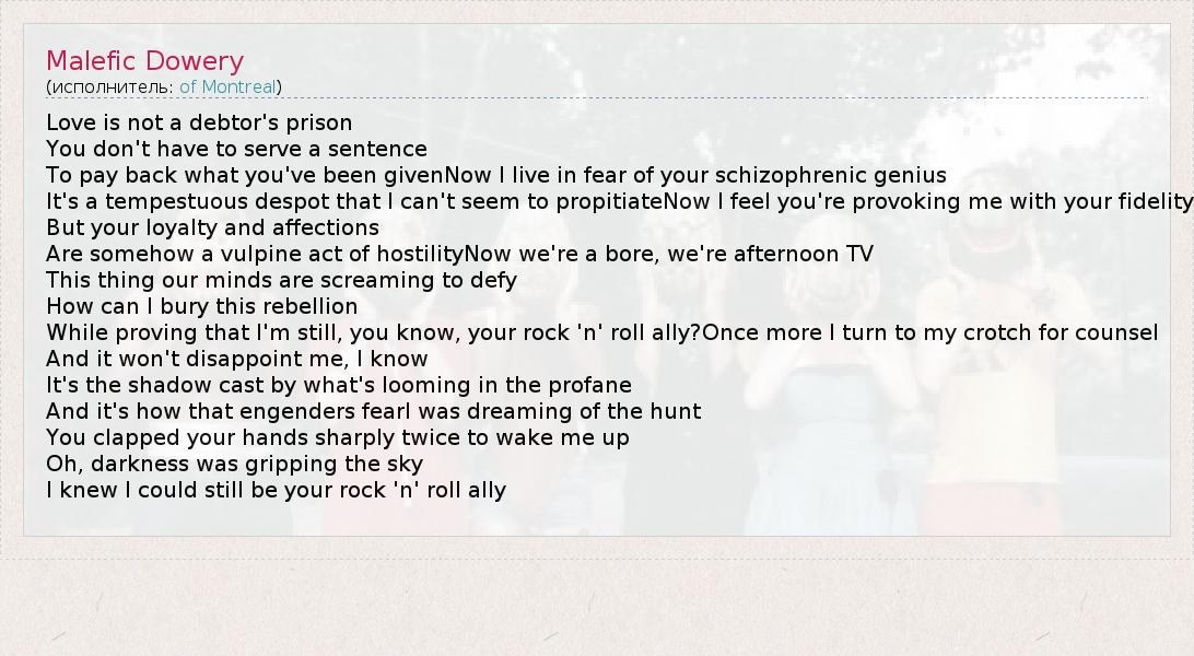А как ты думаешь, о чем песня "Malefic Dowery" ?