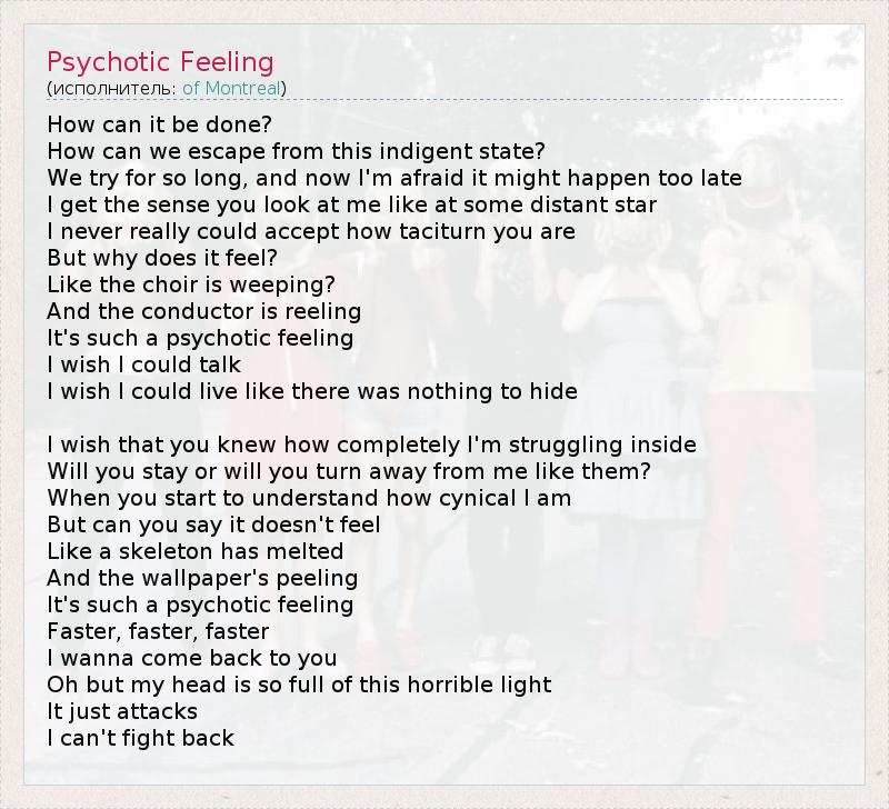 А как ты думаешь, о чем песня "Psychotic Feeling" ?