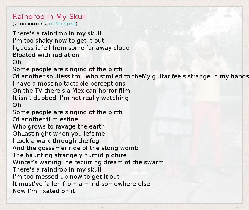 А как ты думаешь, о чем песня "Raindrop in My Skull" ?