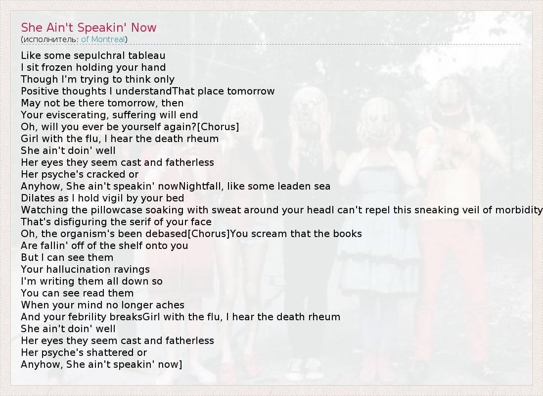 А как ты думаешь, о чем песня "She Ain't Speakin' Now" ?