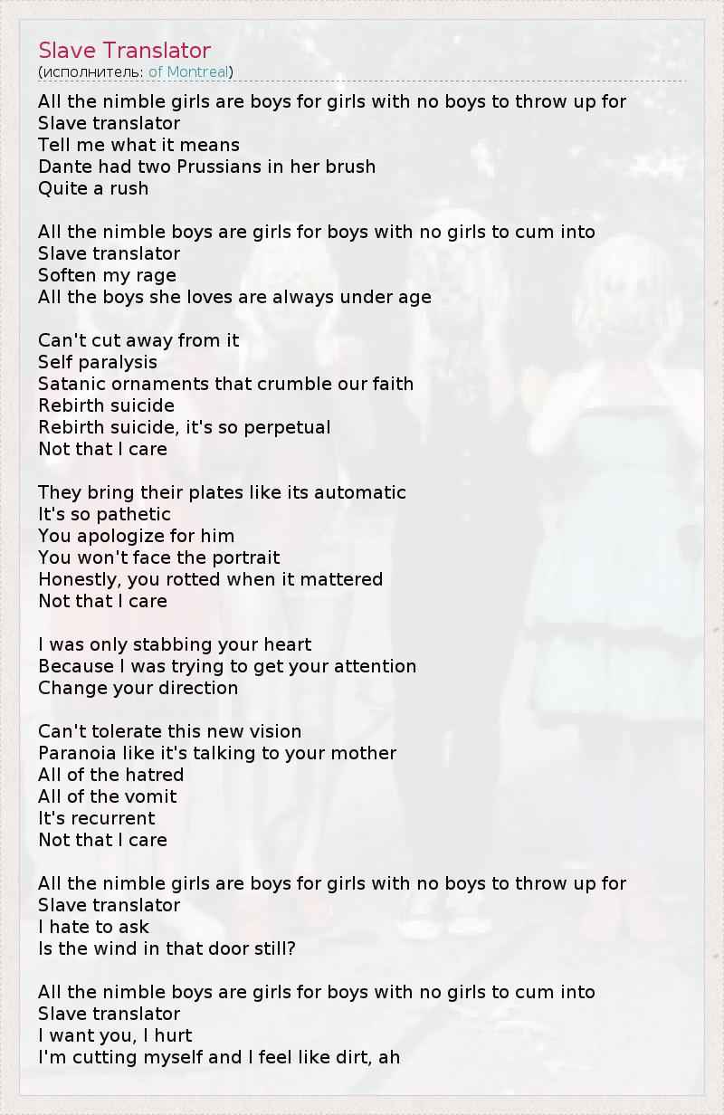 А как ты думаешь, о чем песня "Slave Translator" ?