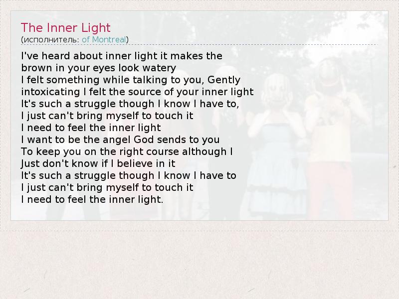 А как ты думаешь, о чем песня "The Inner Light" ?