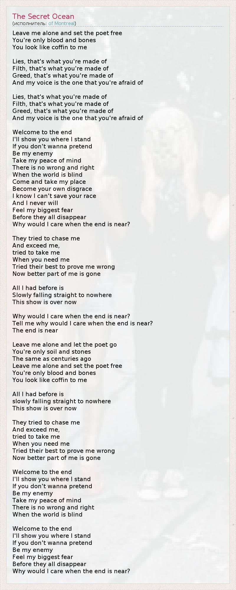 А как ты думаешь, о чем песня "The Secret Ocean" ?